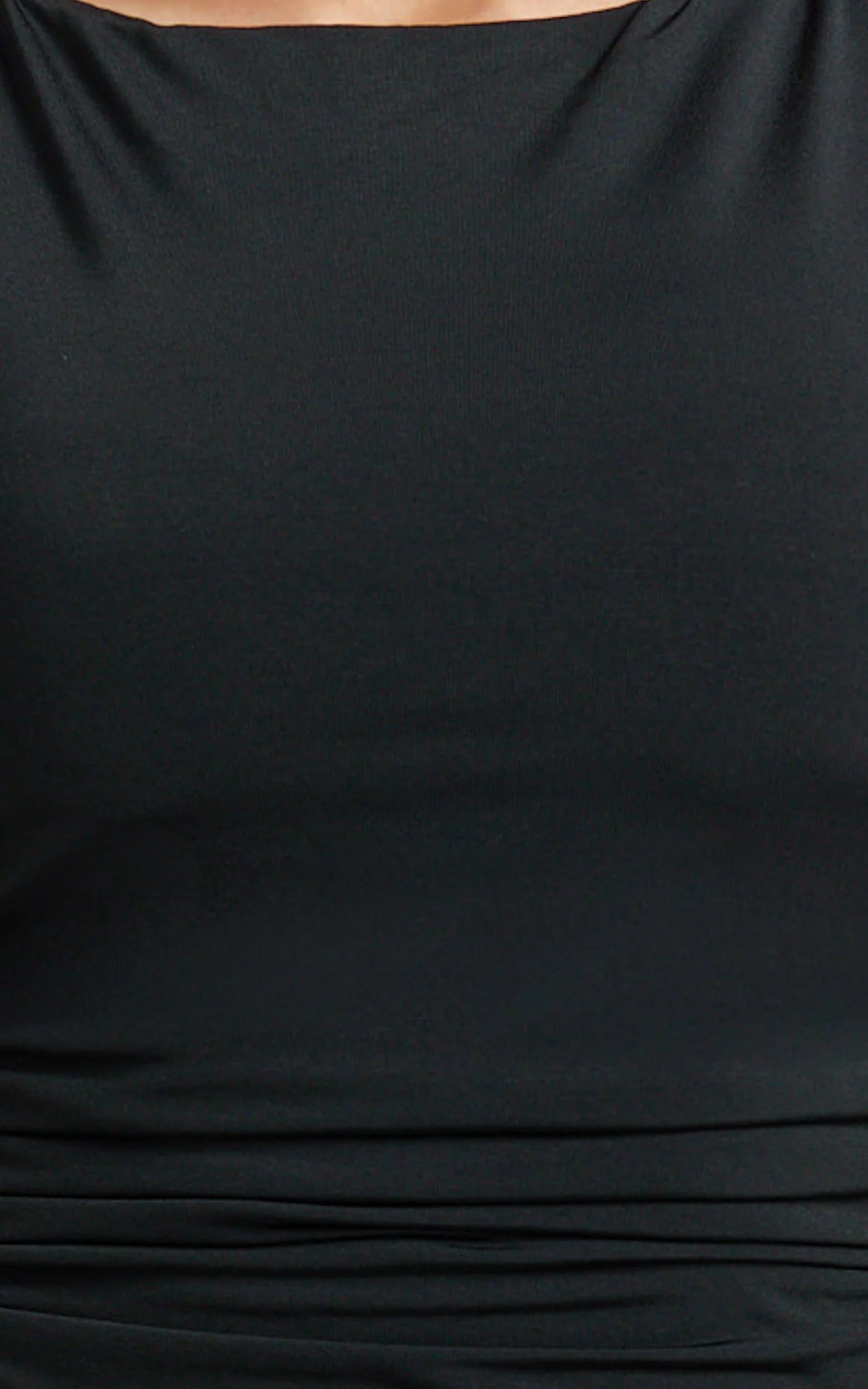 This black bodycon maxi dress features a scoop neck, an open back, and a leg-lengthening fit. It exudes city-ready confidence and has an effortless day-to-night appeal. It hugs the curves and is extremely flattering, making it the perfect go-to piece for your dress collection.