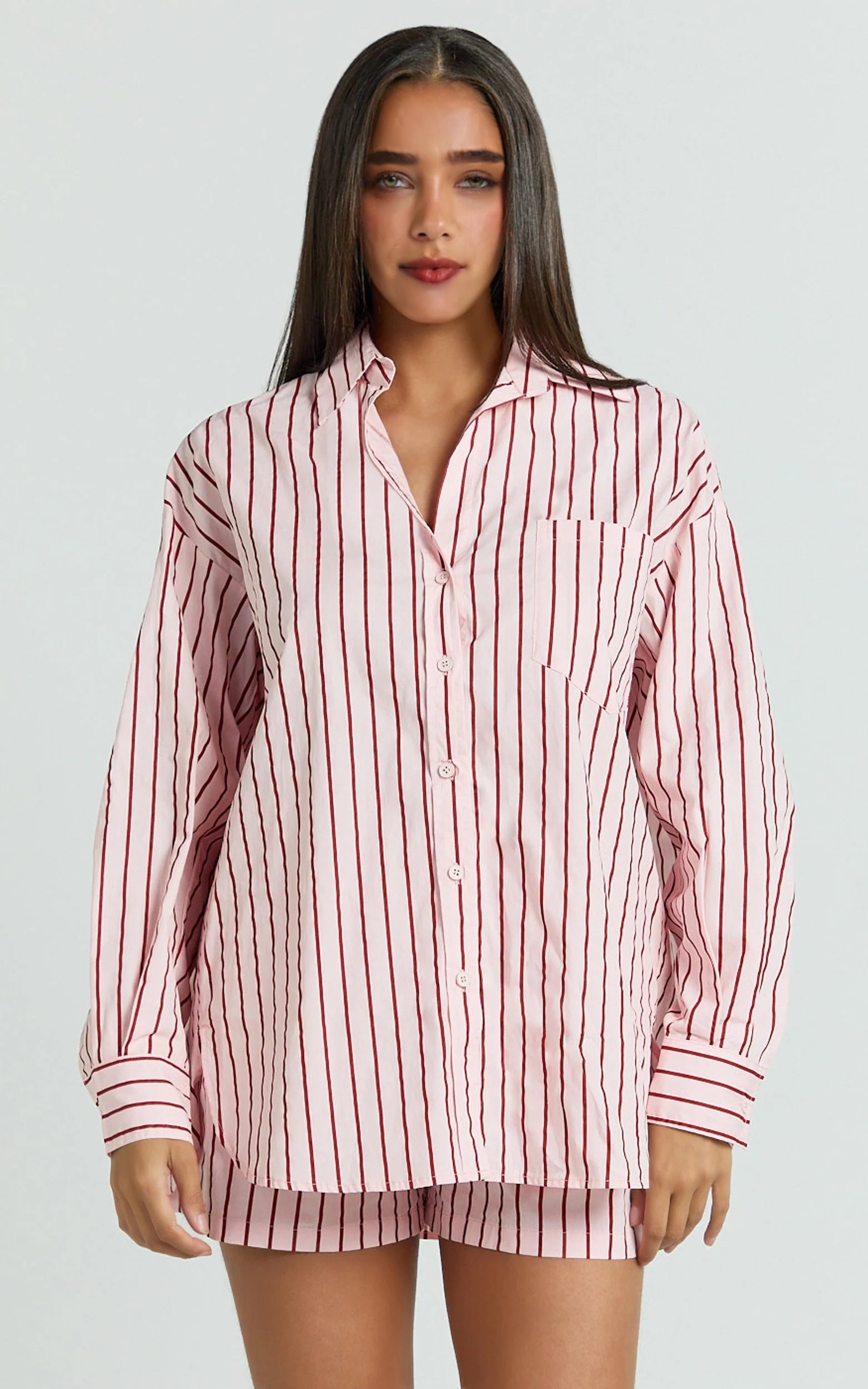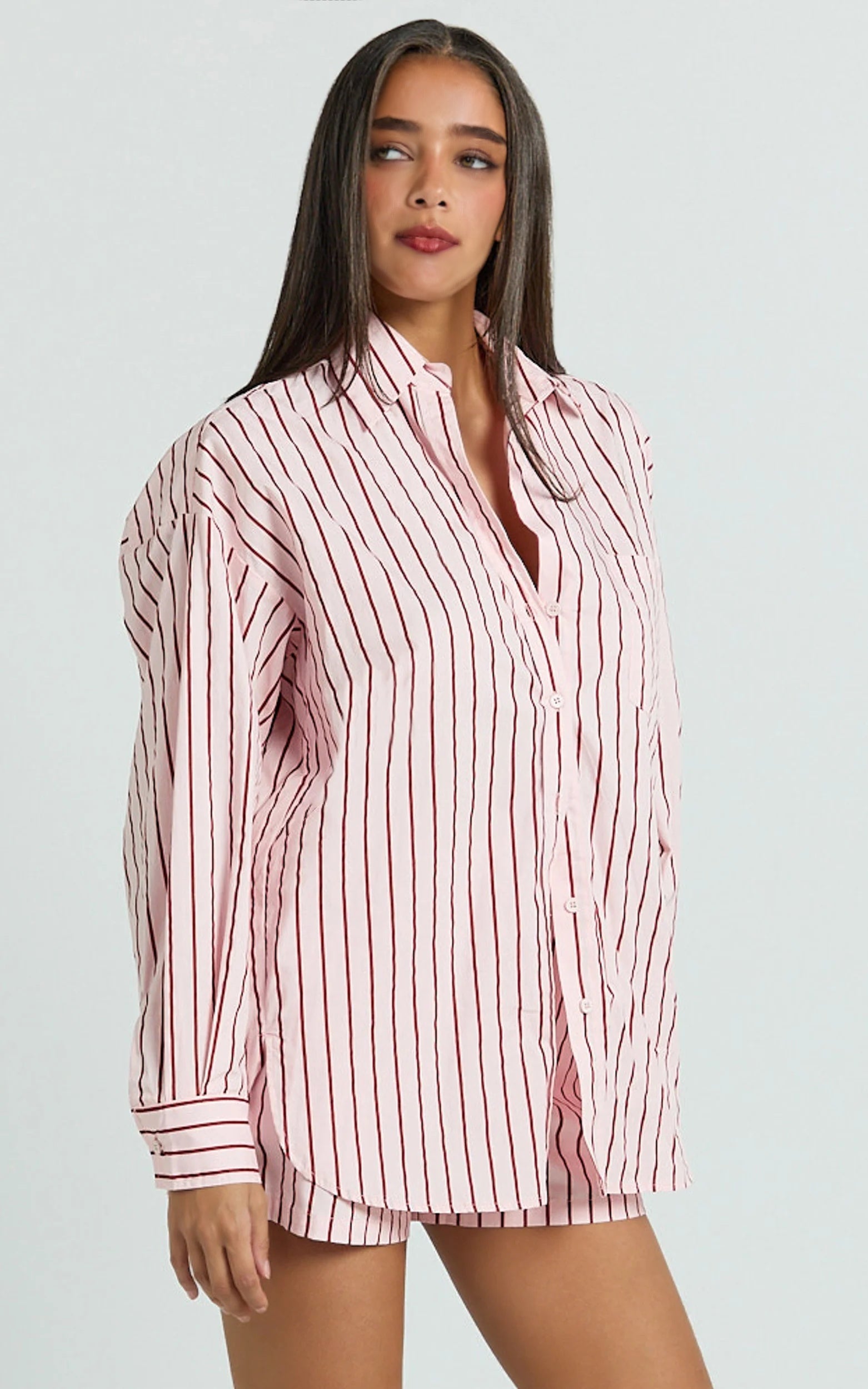 Featuring long sleeves and classic stripes, this shirt drapes beautifully. It's a hassle-free piece that exudes understated elegance. You can tuck it in, layer it, or wear it loose for an effortless, off-duty look.